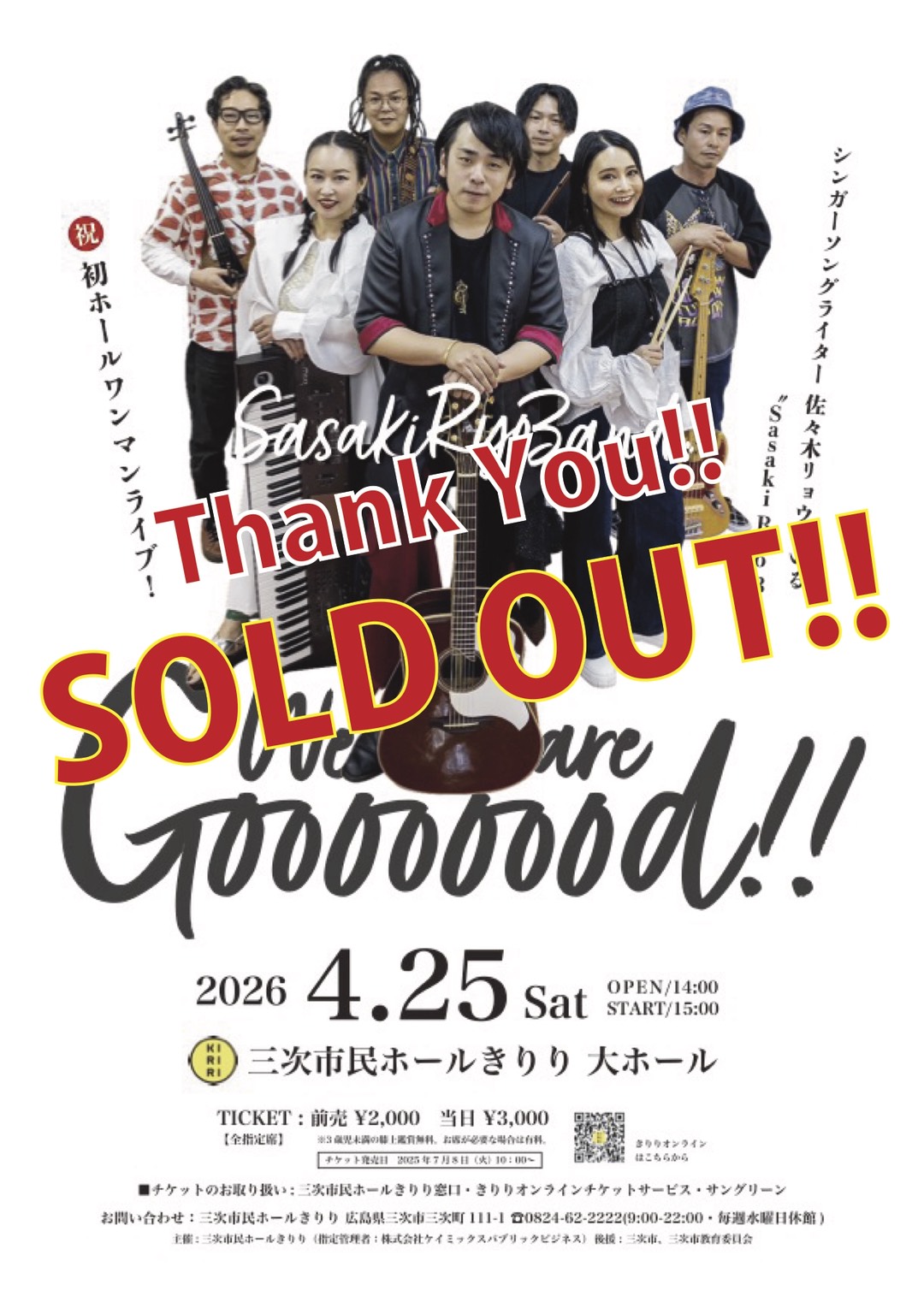 ※SOLD OUT!!【三次】SasakiRyoBand One-man Live!!